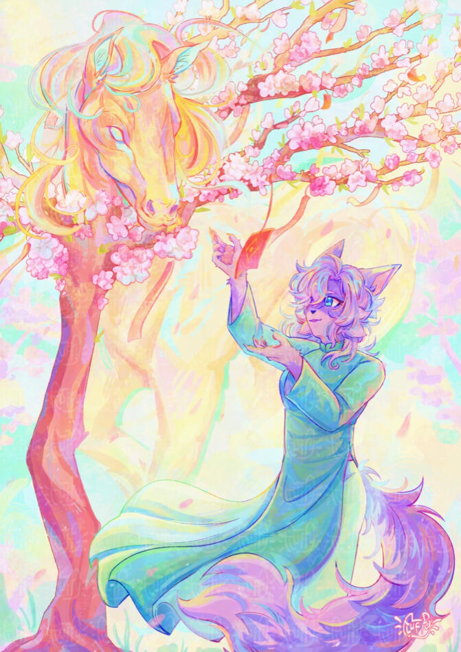 - By commissioning the artist, the client is purchasing the artist’s labor only. The artist retains all rights to the commission, which includes but is not limited to: distribution, reproduction, use of the commission for artist promotion.- The client may not distribute, reproduce, or otherwise profit from the commission, beyond the resale of the original products. The client may not edit, alter, or trace the commission without the artist’s expressed written permission. The client may not print the Commission unless given expressed written permission by the artist.- The client will not permit any use of the artist’s name or misuse of the commission which would reflect discredit on their reputation as an artist, or which would violate the spirit of the commission.- The client may NOT use the artist's works for AI database, AI training, NFT minting or to be used in any image generation AI.- The client may display the Commission in Profiles as long as the Artist’s name (“Fluffy Starlaxy") is prominently displayed.